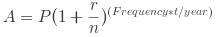 A = P(1 + r/n)^(nt)